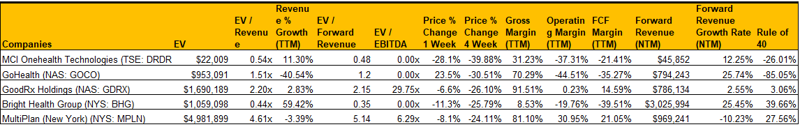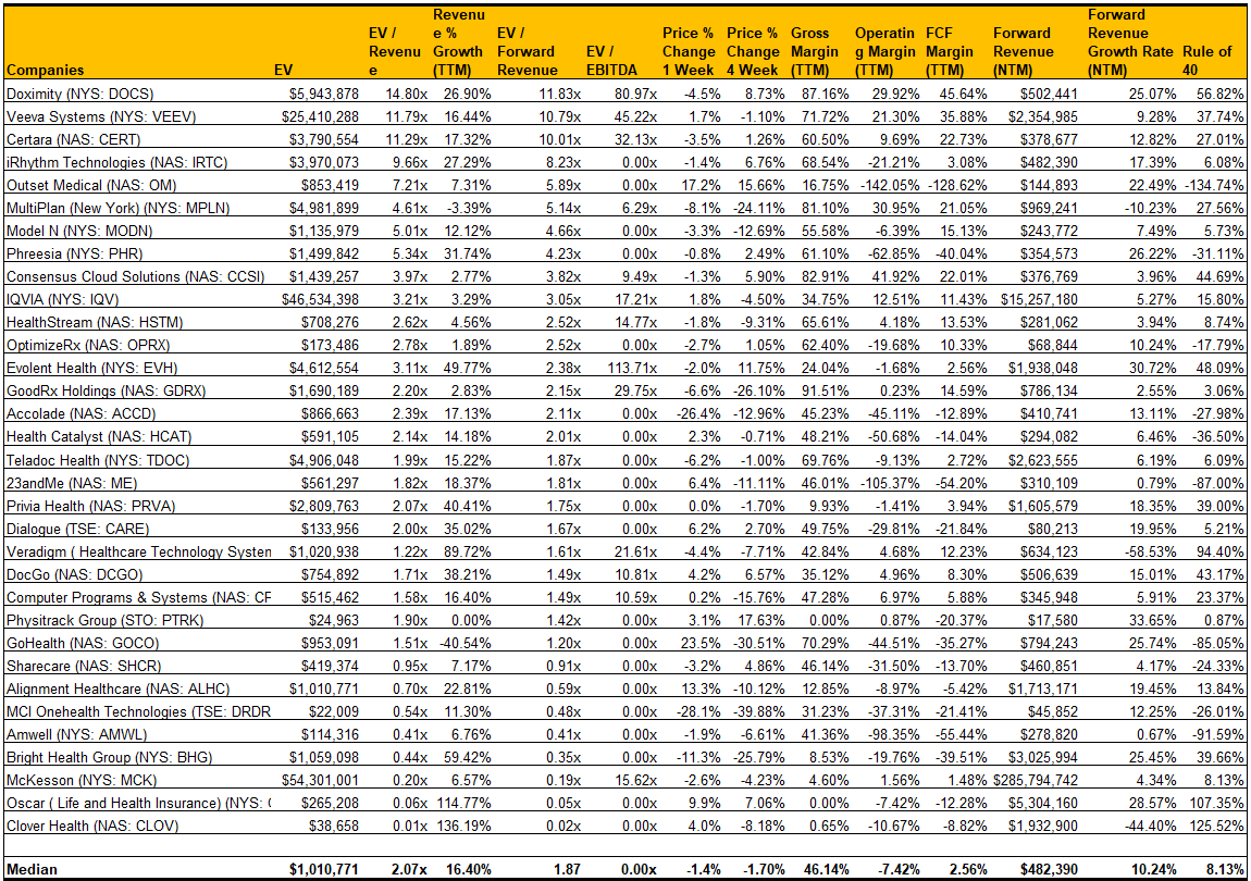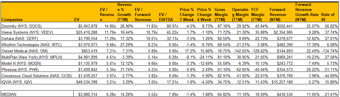 & Healthcare Software Comps - 5/5/2023
